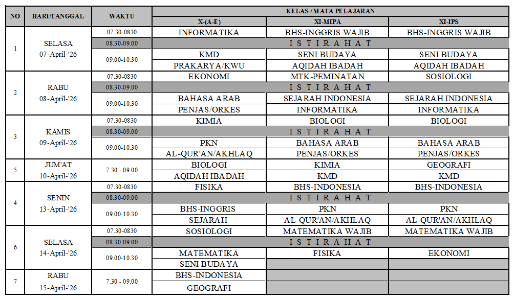Berikut Jadwal Pelaksanaan Asesmen Sumatif :